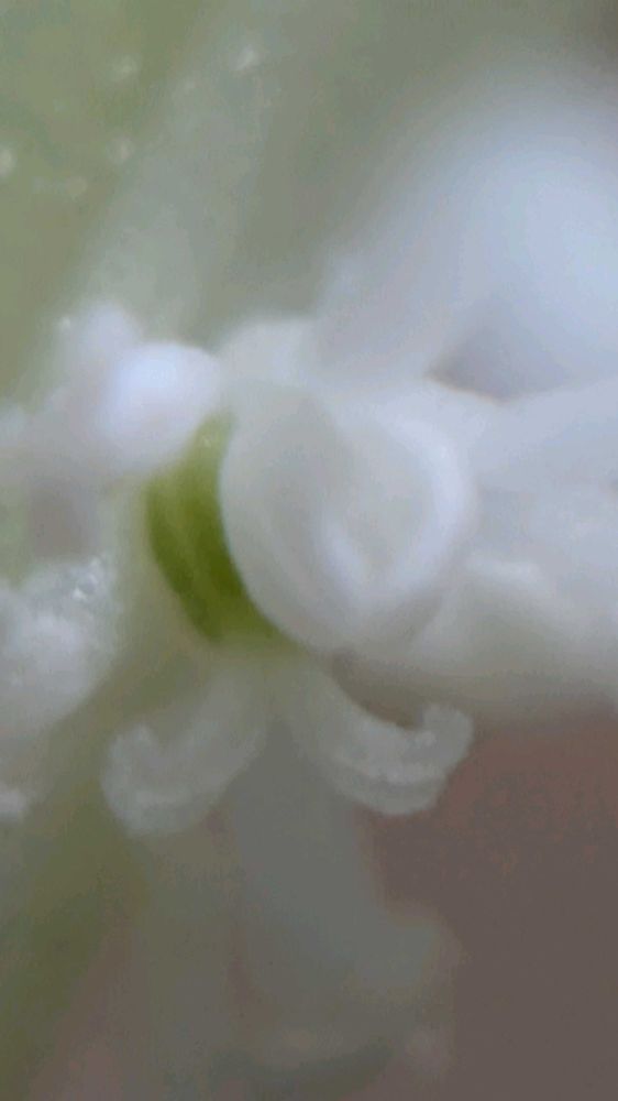 緑色をしているのは子房だ🟢 先が割れた雌しべの柱頭がかろうじて見える♡