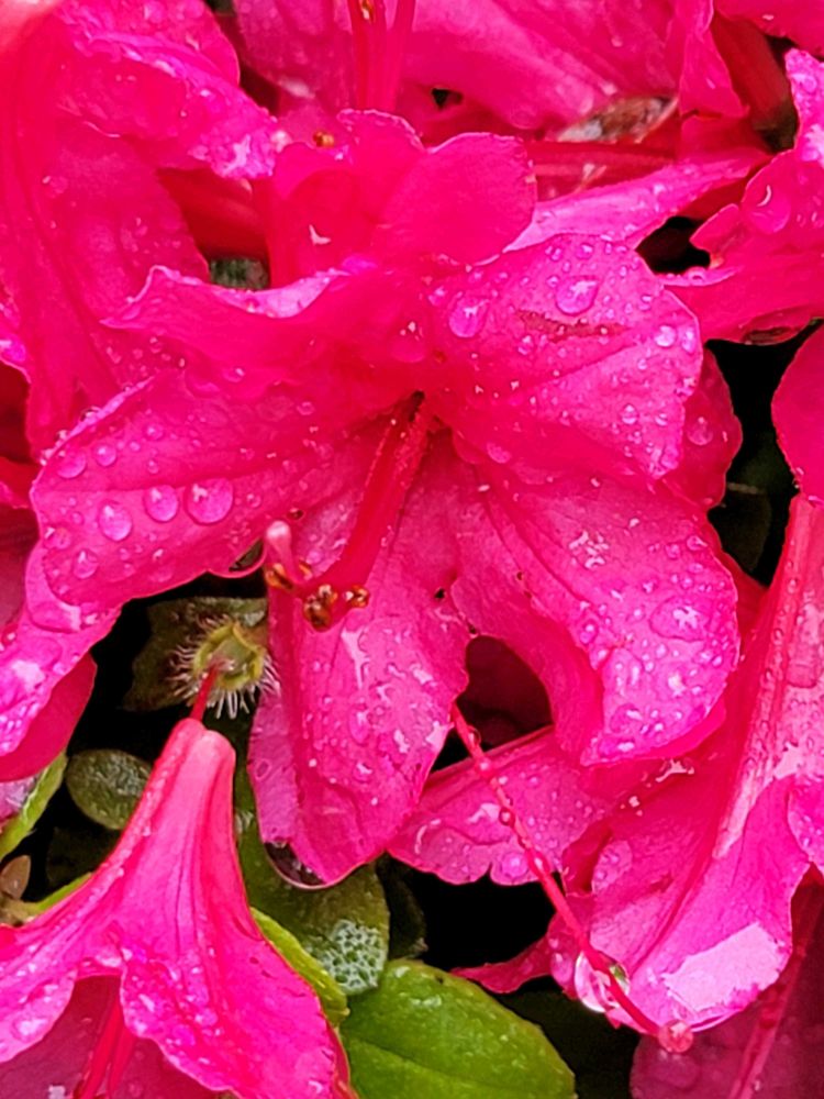 雨の晴れ間 小ぶりのツツジが真っ赤に咲いてます💕💕💕