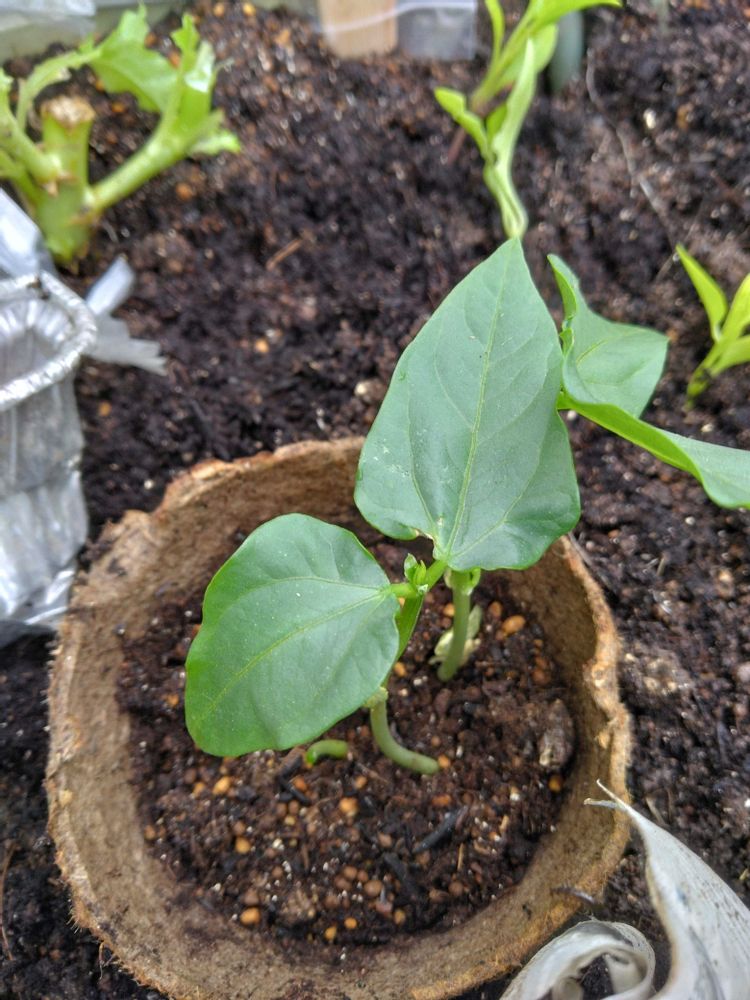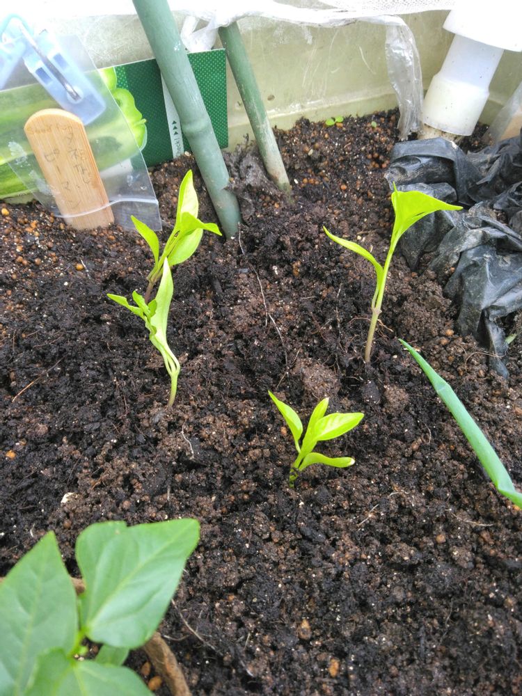 4枚目 種無しピーマン🫑は成長がイマイチなので、種蒔き用土から別の土に移植