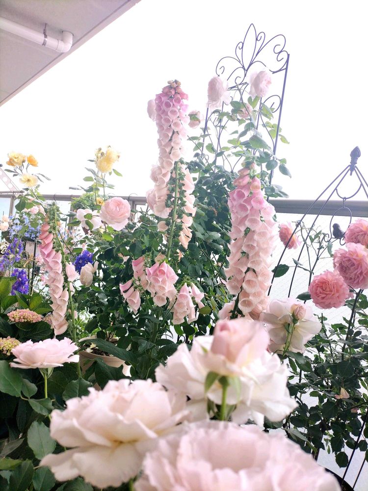 ジキタリスが咲いたのでセントセシリアの前に持ってきたらこんな感じになりました🥰