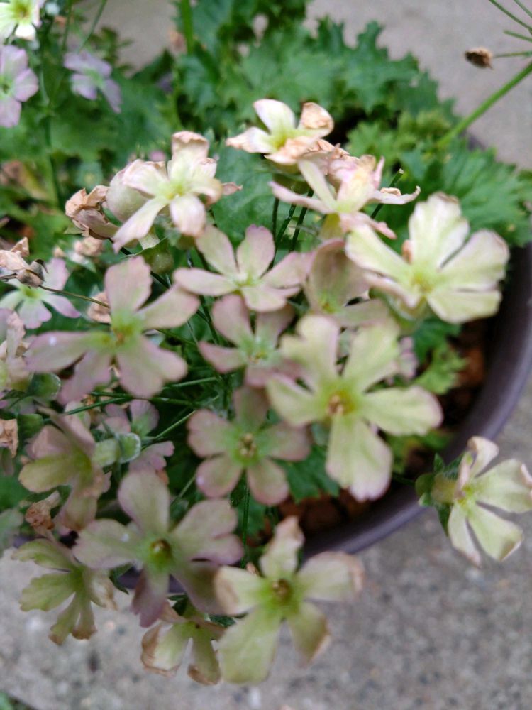 ライムグリーン色に変わり、お花ももう終わりです。元の色と比べるとかなり違います。夏越しできるか、チャレンジします。
