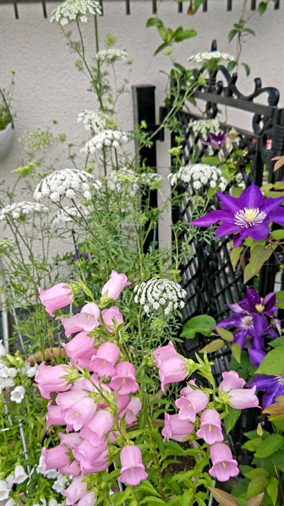 玄関アプローチ,カンパニュラ,ホワイトレースフラワーの投稿画像