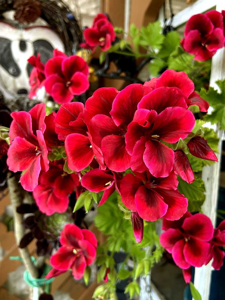 ええ感じの色のゼラニウムさん♥️とツーショットです🤎🖤♥️