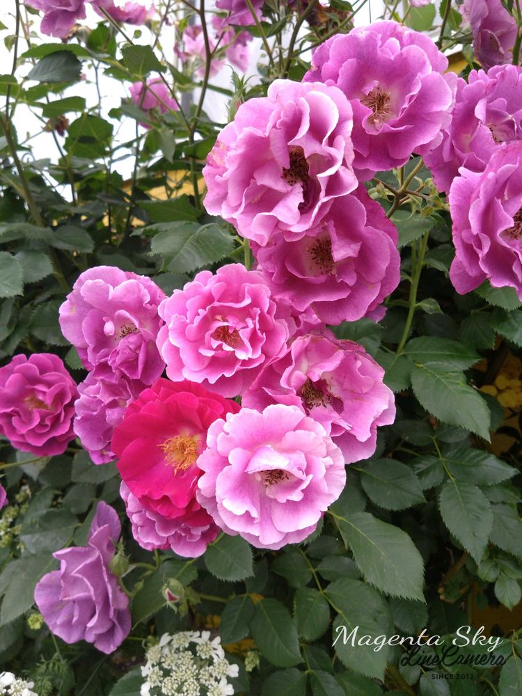 ①マジェンタスカイ🌹西日ガンガンでもチリチリせず良く咲いてくれる🎶 このグラデーションが好き❤