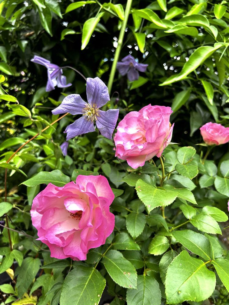 ④薔薇ストロベリーアイスとクレマチス ベティコーニング