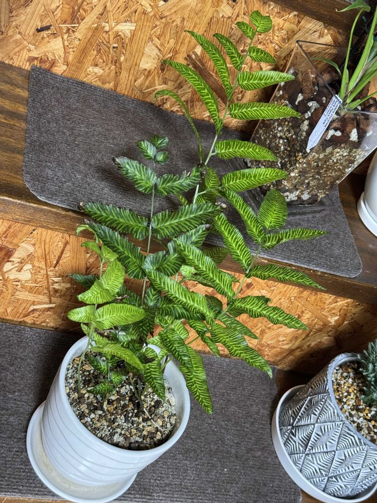 置き場所を変えて育成ライトの下でチランジアと一緒に霧吹きされる環境にしたら葉がかなり大きくなりました。
