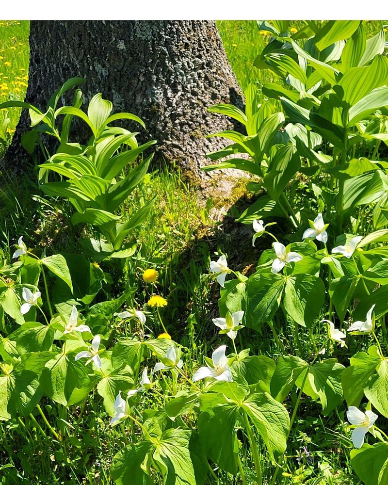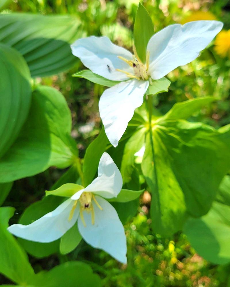 オオバナノエンレイソウはクレマチスより大きいお花で、お日さまに照らされると白さが際立ちます🤍