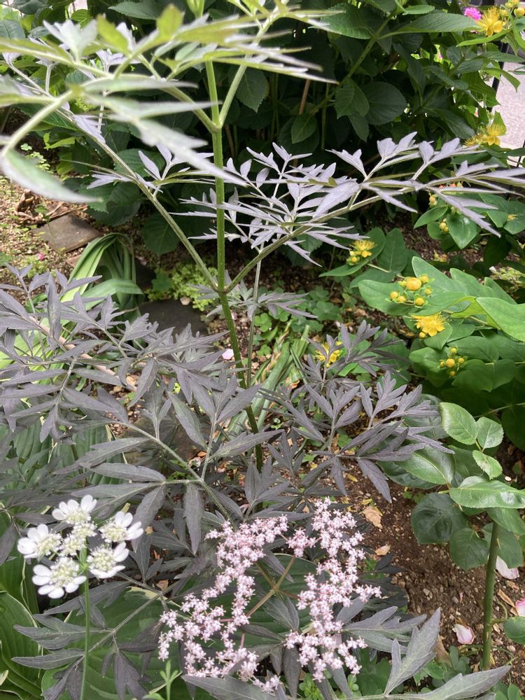 西洋ニワトコ 昨年銅葉色の葉とピンクの小さなお花のかたまりが可愛くてお迎えし春先に地植えしました。