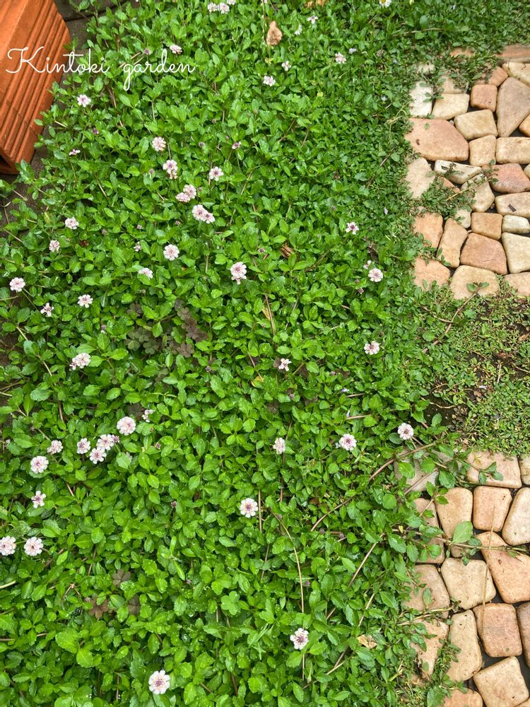 姫イワダレソウ 踏石の隙間に群生しお花が咲きだしました。