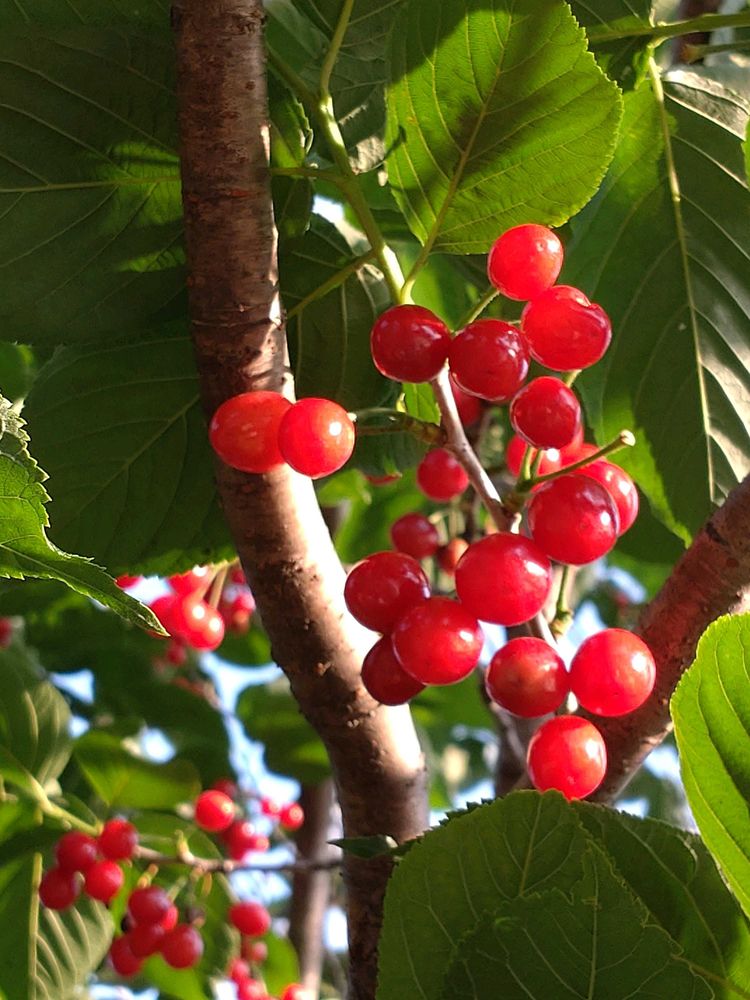 神社の境内に実ってたさくらんぼで