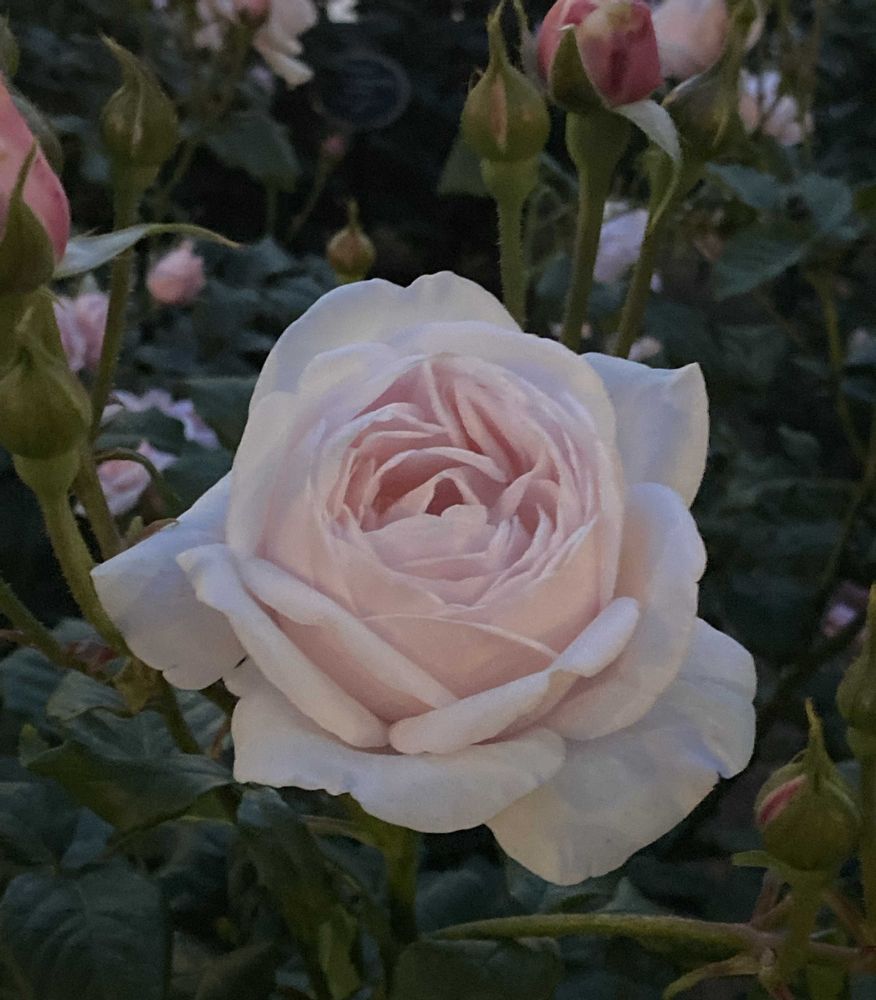 黄昏時のバラ園にて