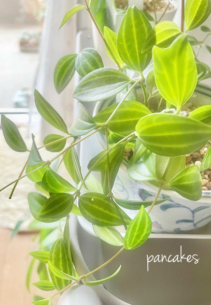 光の加減でか透明感がありますが、多分、Pancakesさんが育てられてるペペロミアは、ペペロミア フェアリーだと想います💚💚💚💕