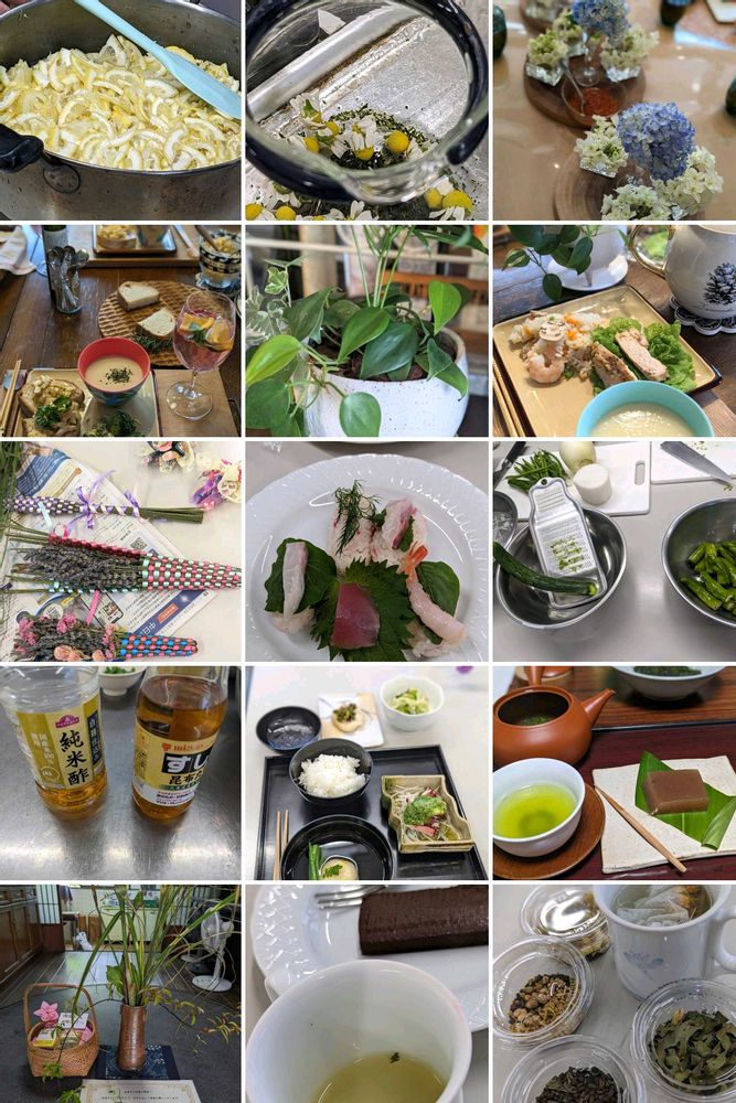 Googleフォトが「豊田市 2年前」と題してコラージュしてくれました🍀😊✨2023年6月🌿お茶とスイーツ「おうち薬膳」の講座でレモンジャム🍋を作りました♪㊧㊤ ハーブ教室でハーブ料理🧑🍳お料理教室🌿喜楽亭で味わうおいしい日本茶の講座( ^^) _旦~~🍵お友達の🏠ランチψ(´ڡ`♡) ŧ‹"ŧ‹"愛知県