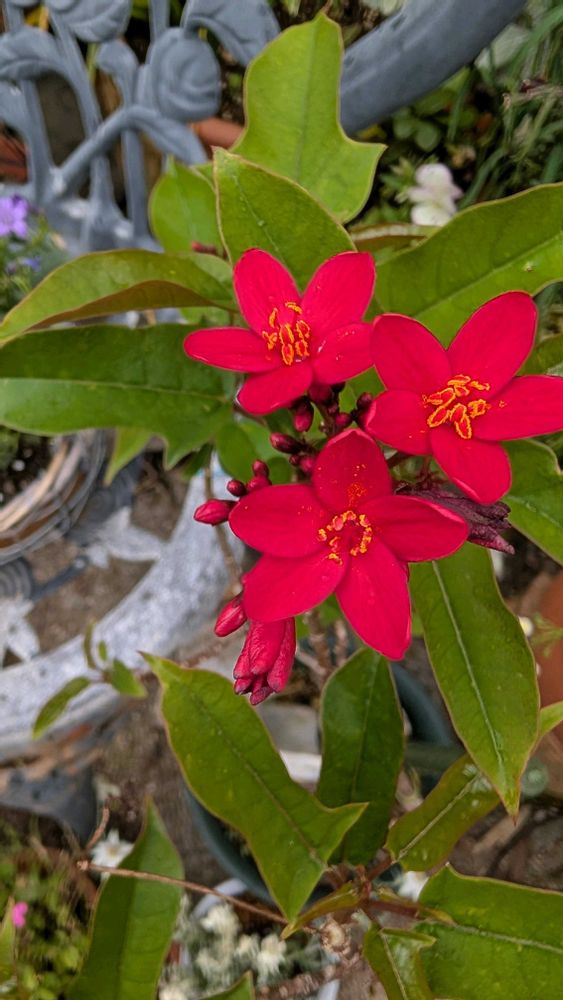 南の島らしい真っ赤なお花❤️シベの黄色い縁取りも葉っぱの形も素敵ですね🥰