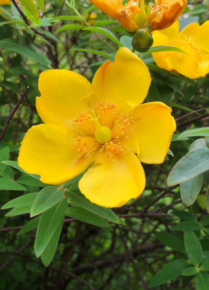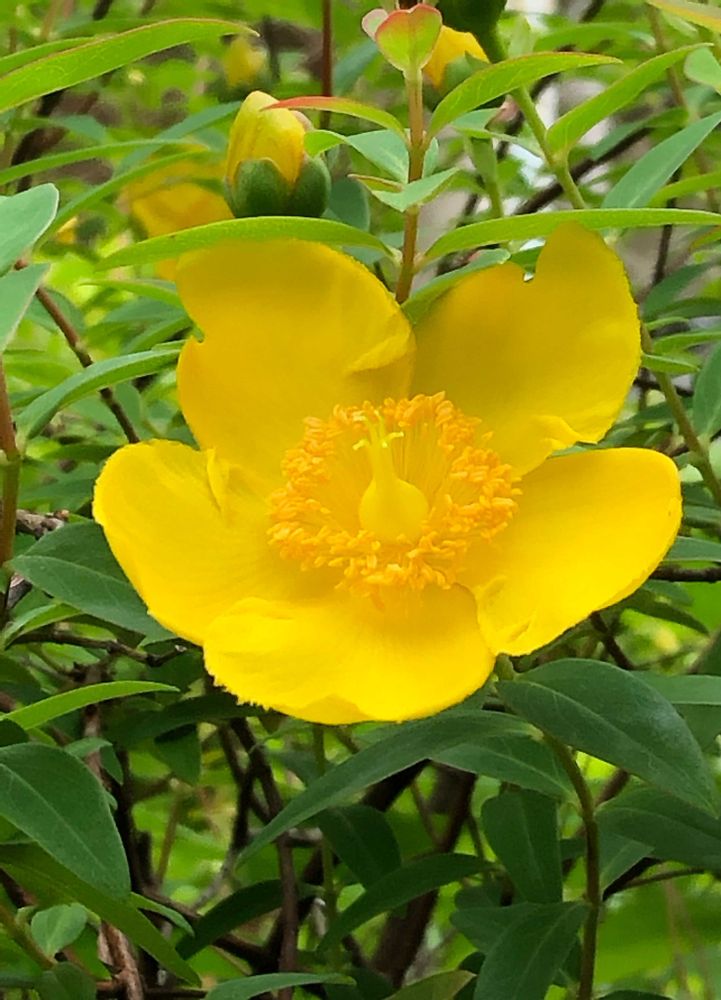 道路沿いの花壇にて、山吹色の「タイリンキンシバイ(ヒペリカム・ビドコード)」をパチリ!📸💛🌿😊😄🌞✌️