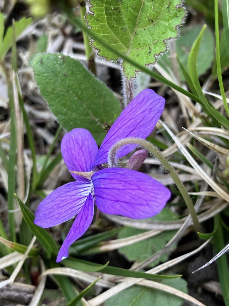 この大きな葉っぱはサクラスミレだと思います。それにしても花柄がとても毛深いですね😄