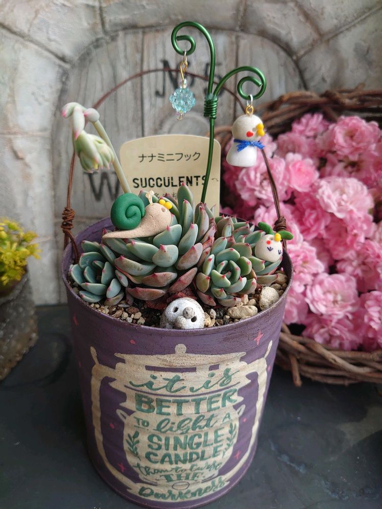 (*’▽’*)素敵なリメ缶にI植えられてる~♡ ̖́-
