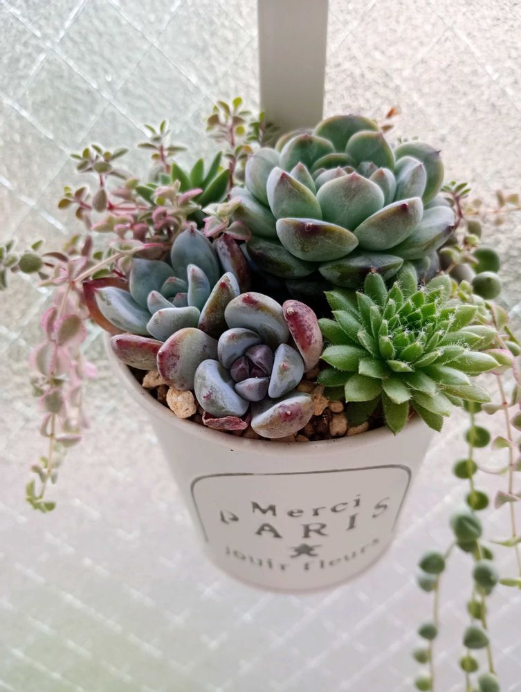 最近、アッヒャー⸜( ᐛ )⸝٩( ᐖ )و٩( ᐖ )وアッヒャー♪となってる寄せ植えが多いのですが、この寄せ植えだけはみんないい感じにまとまってる゚+。:.゚(。•∀•。)゚.:。+゚嬉しい‼️