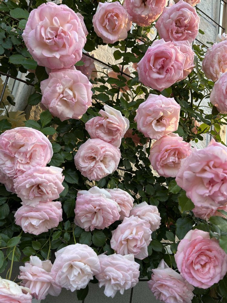 数日前のピエールさん💓相変わらずかわいい😍昨年はオベリスクに誘引したけど、今年は壁面に這わせてみたのはいいけど、写真撮るの忘れてて😭2枚目なんかもう散る寸前の写真💦