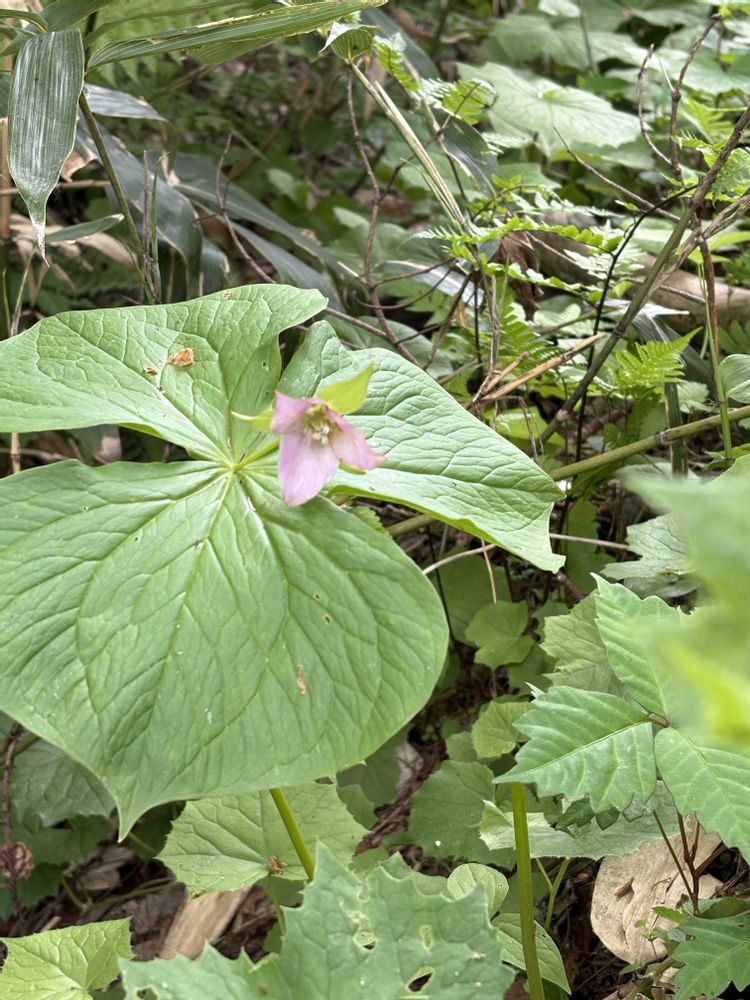山野草を見ながら歩きたくて、野幌森林公園に行きました。ここは札幌に住む花友さんに教えていただいた所です。息子の家を訪ねたついでに寄りました。遊歩道を歩き始めてすぐに見たのが今日のお花、オオバナノエンレイソウです。あちこちに咲いていてもう感激‼️2枚目のピンクのお花も見つけました。3枚目はエンレイソウ。茶色っぽくて、お花も小ぶりです。ここには5枚しか載せられないけれど、たくさんのお花を見ましたよ。マイヅルソウの群落なんか、ここでは珍しくないんですね。エゾハルゼミが鳴き、いろいろな小鳥の声、キツツキのドラミングも聞こえる遊歩道はいつまでも歩いていたいと思いました。