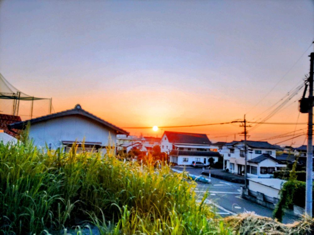 久しぶりの夕焼けが綺麗にさしてきたので、携帯持ち急いで、私達の住宅の下の、アパ―トの駐車場からシャメしました。綺麗でした。