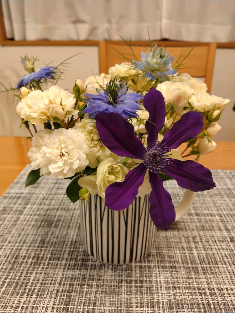 マグカップでも、ちょこっとお花があるって可愛いデス〜🥰🤍💙🤍🤍🤍✨