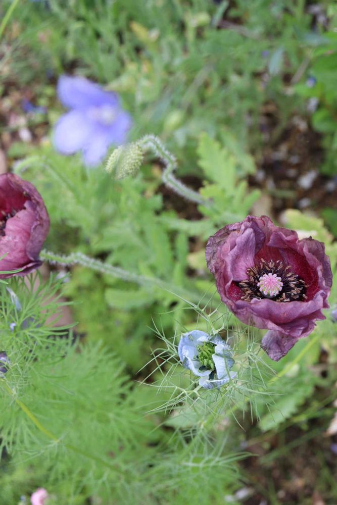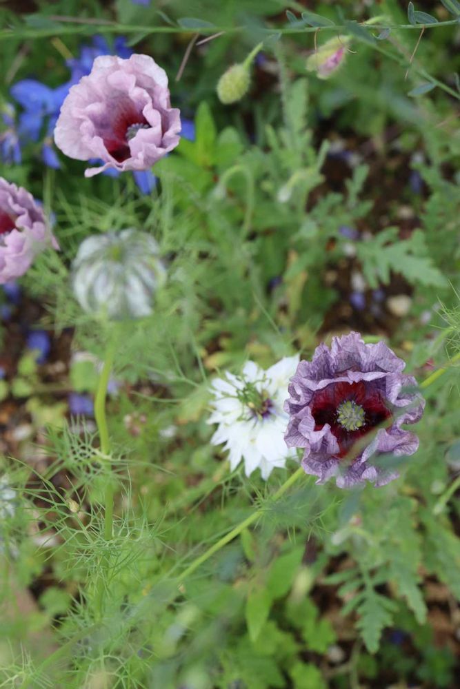 こぼれ種のニゲラも咲いて涼しげな色合い𓂃𓂂𖡼.𖤣𖥧𓈒◌܀