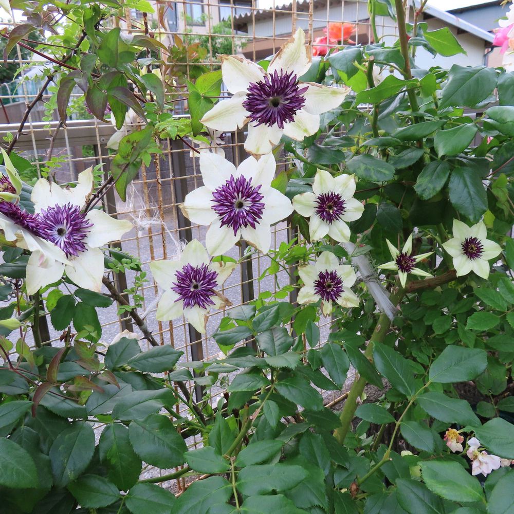 ・クレマチス白万重が旺盛で集まって咲いてくれるので、つい写真を撮りたくなります。
