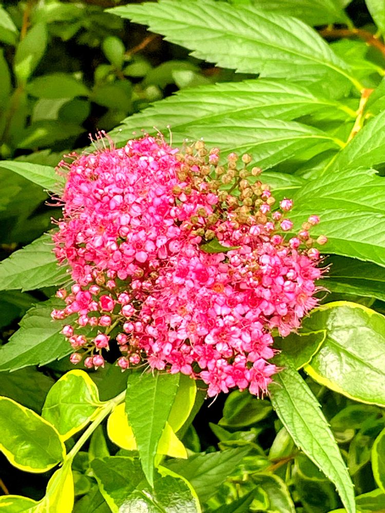 買い物帰りに,通り道のマンションの植栽,シモツケのお花の投稿画像