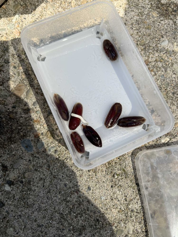 2週間ほど毎日水を替えながらつけておいたデーツのタネ