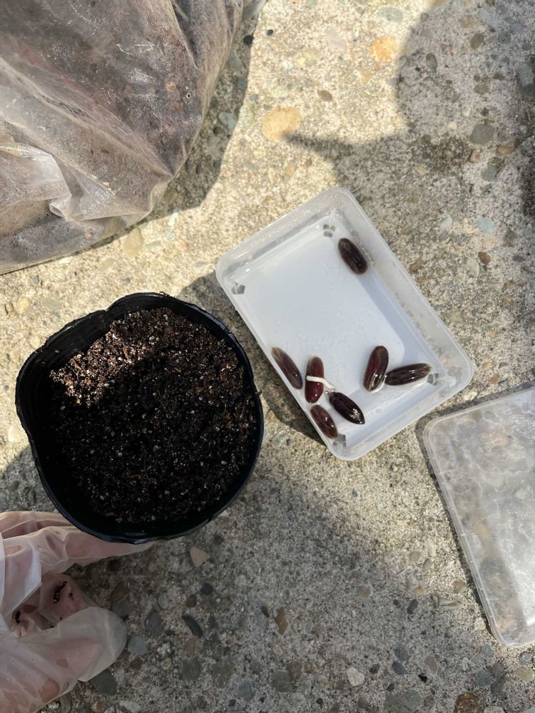 今年初めて知ったうりずん豆(四角豆)。名前を聞いたのも見たのも育てたのも食べたのも初めて❗️そして季節が終わりプランターを片付けていた時、プランターの底に何か大きなものが‼️😳