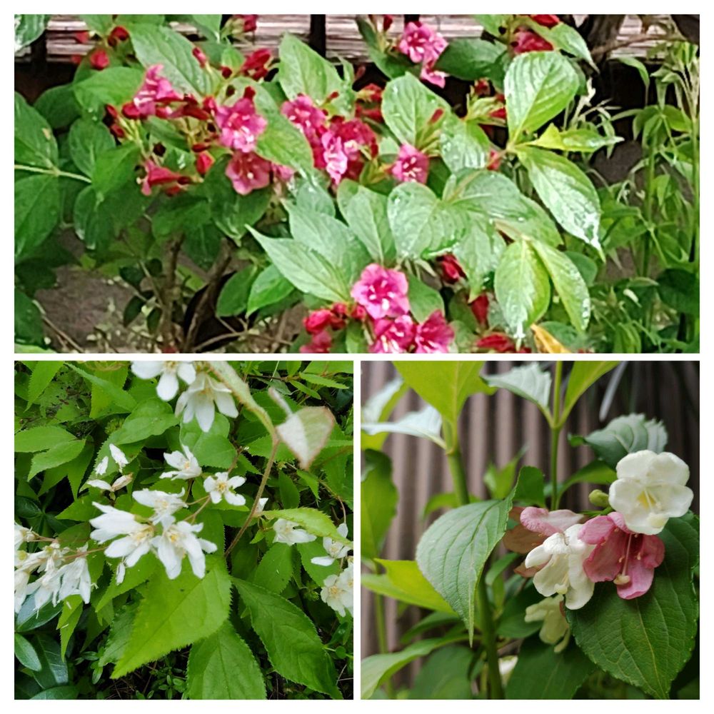 箱根ウツギ、紅ウツギ、斑入り葉のウツギはほぼ同時期に咲くね。