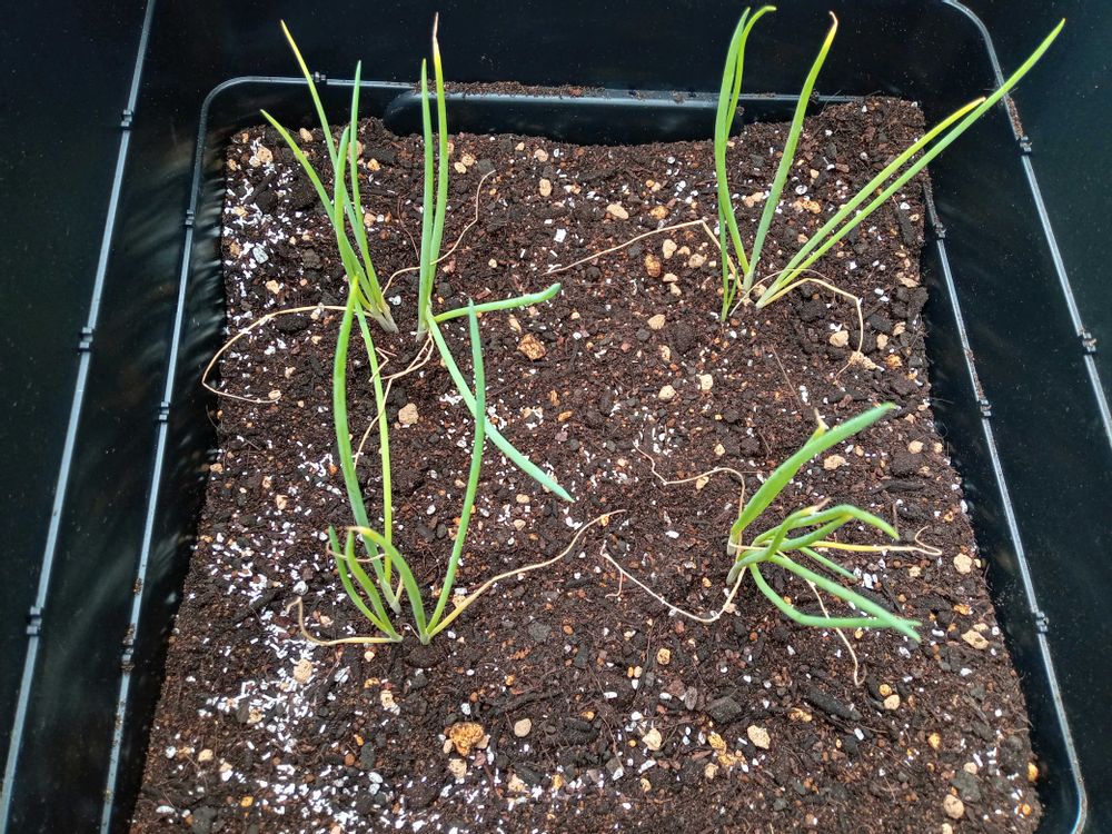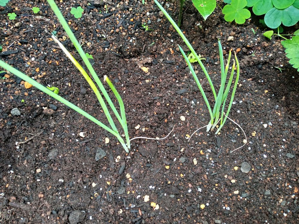 ねぎ坊主ができたので、先週株元で全部刈り取って肥料播いたら、もうすごい勢いでのびてるわ、家の数年株🤣