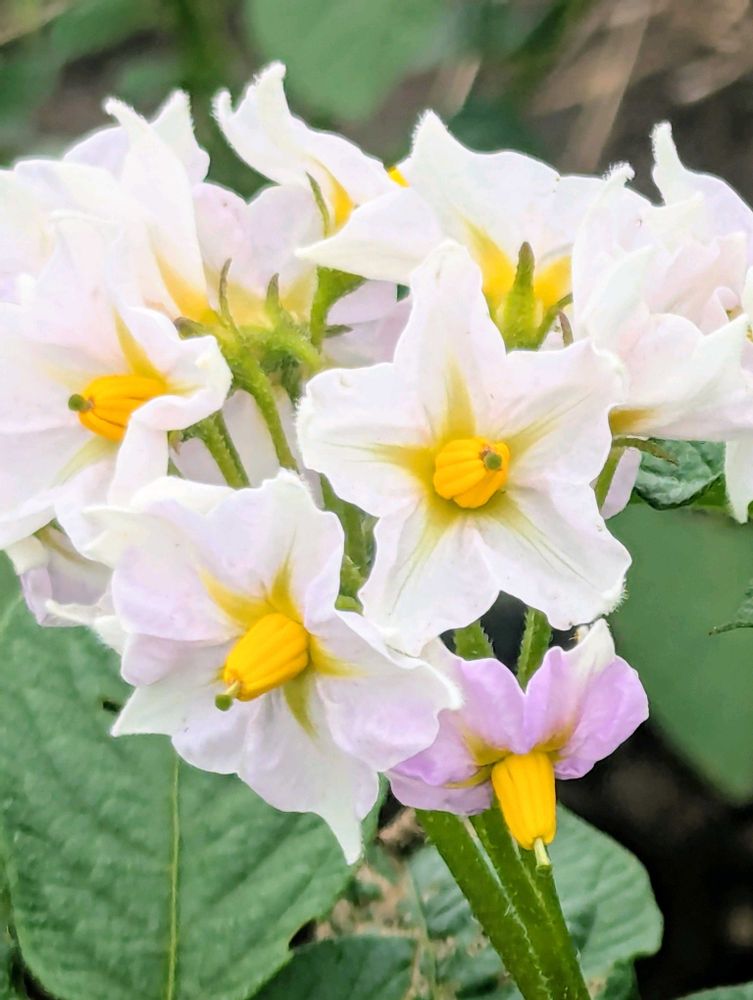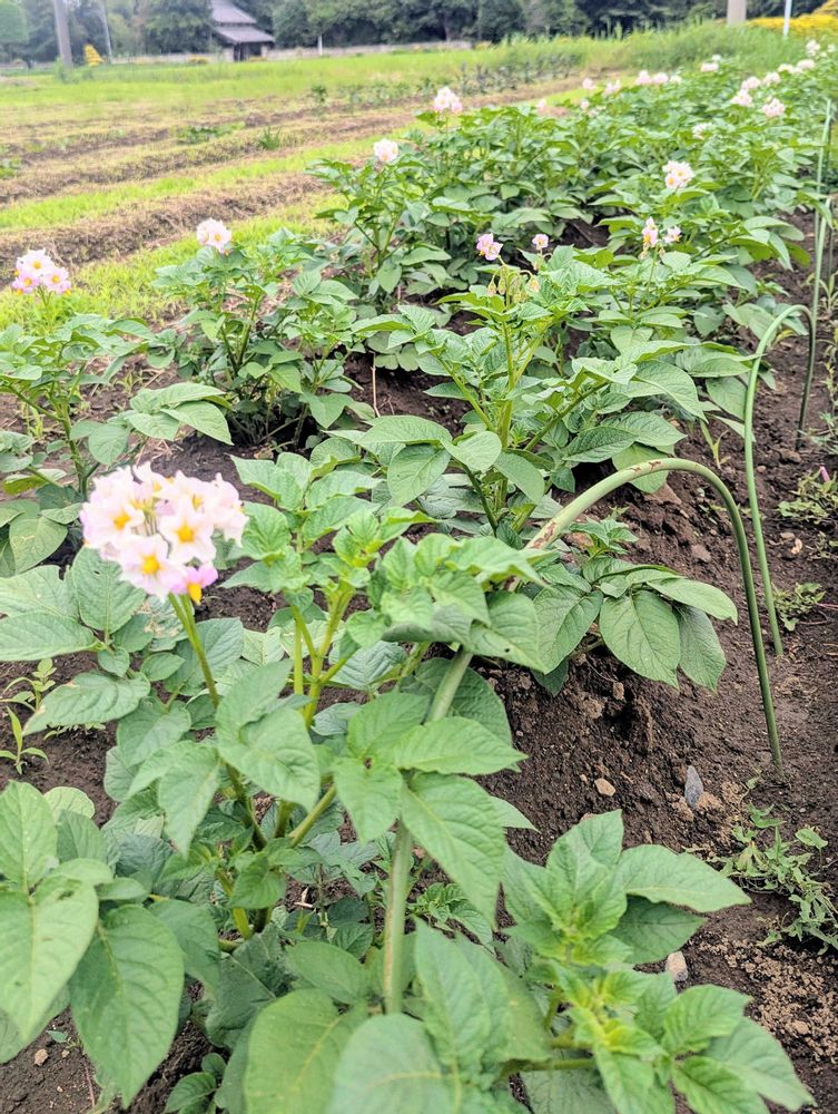 じゃがいもの花は、咲くとすぐ取っちゃうからなかなか見れないですよね〜