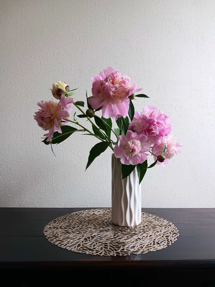 ただここではもう少し大きいものに生けた方が、芍薬とのバランスは良くなるかもしれません。一種でい生けるときと他の花材を混ぜるときにも変わってきます。