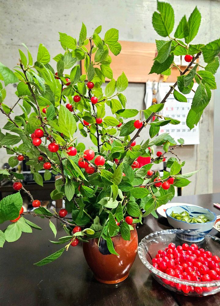 1️⃣2️⃣ユスラウメの枝と実を沢山頂きました⤴アマ~イ💕