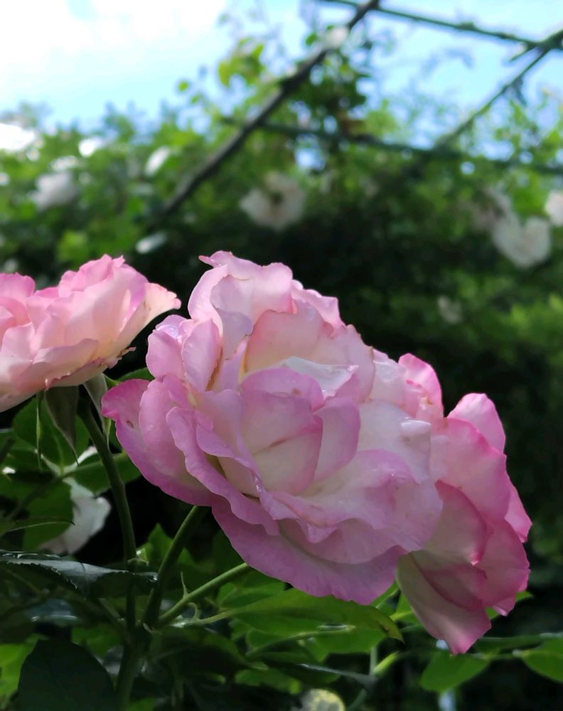 ①②③アーチで咲いているつる地植えのバラ❇️🩷🌹🩷❇️