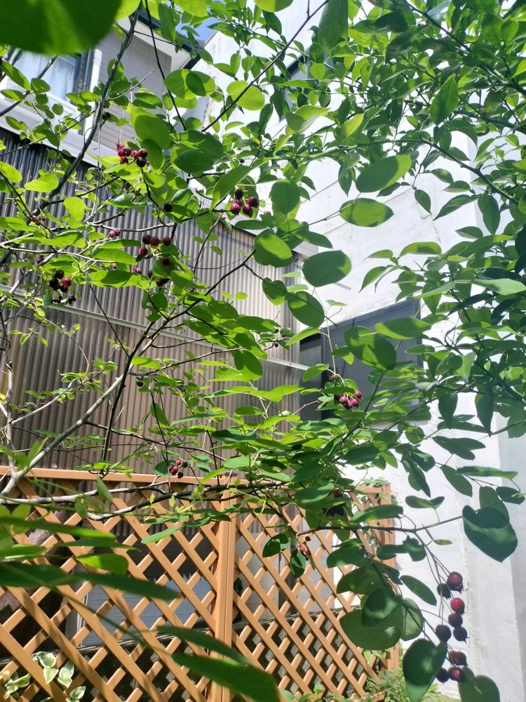 たまには遊びにおいで。庭のジューンベリー、食べ頃よ?