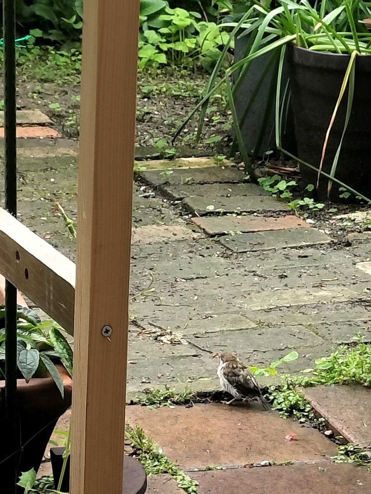今年うちの庭でスズメが子育てしてました。