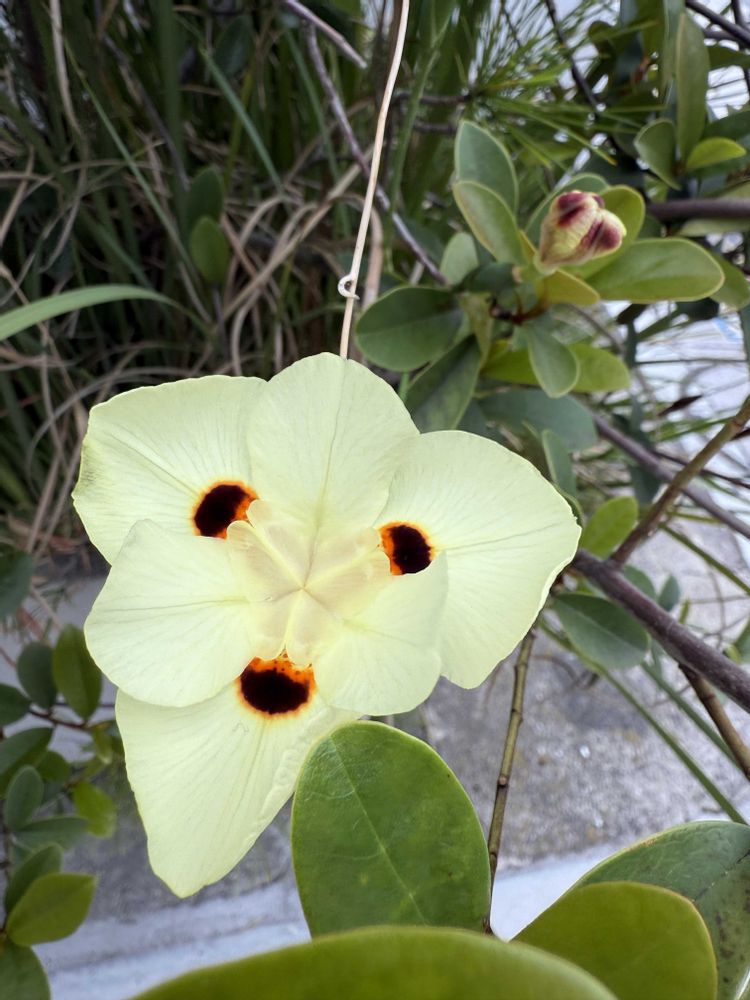 人面花のようなディエテス・ビコロル。後ろにも宇宙人のような方います。😆花言葉は知恵。