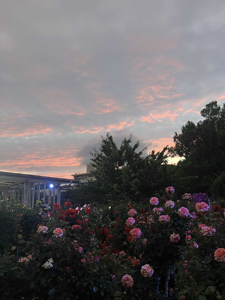 バラ🌹と夕焼け、素敵な景色ですね。