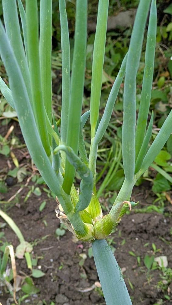 子ネギ 摘んで薬味にしました。柔らかくて美味しかったです。おんぶされたまま育っていて面白いです。🤗✨❤️