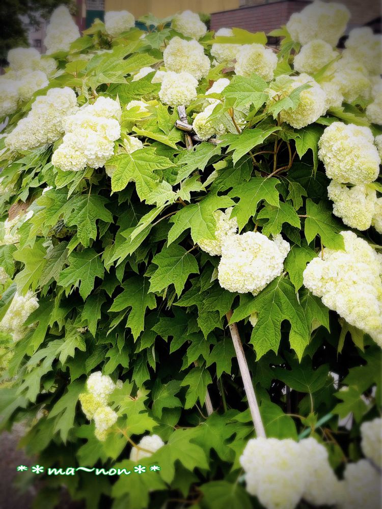 近所の遊歩道にハーモニーというもこも可愛い柏葉アジサイが咲いています☺️