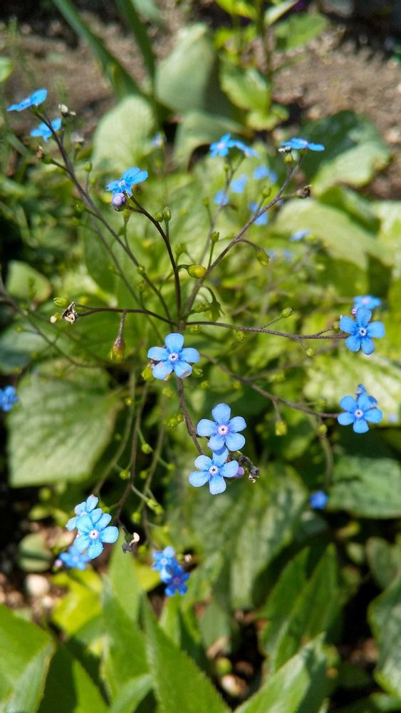 さん おはようございます。何度もお便りをいただきありがとうございます。昨日は所用のため調べる時間を取れなかったので、結論を出せず仕舞いですみません。いろいろと調べてみたところ、はなさんにご教示いただいたブルンネラで間違いなさそうです。花はワスレナグサを少し大きくした位で、葉がハート形又はスペード形で装飾的な葉脈が特徴的と解説されており、その違いからジャックフロストやルッキンググラスなど多くの園芸品種があるとのことです。私が見かけたのはどうもジャックフロストのような感じはしますが、はっきりしませんので、ブルンネラの名のタグを付けてあげたいと思います。まだ蕾が結構見えますので、これから満開を迎えればもっと華やかになることでしょうね。またいろいろと教えていただけると嬉しいです。ありがとうございました。