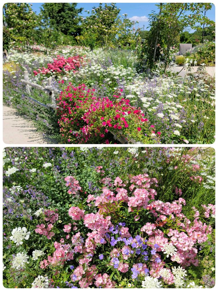 バラを中心に一年草や宿根草が自然な感じに広がっていてとっても素敵でした🌹🌿