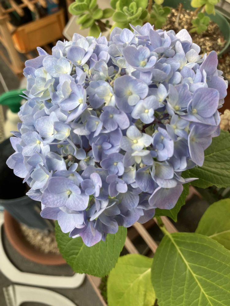 挿し木をしていた紫陽花が咲きました😊新芽が動き出してから2ヶ月で咲くとは、、、(3月16日に投稿してます!)爽やかな色で癒されます💕