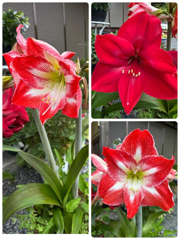 3枚目・ご近所さんに頂いたアマリリス2種類です❤️🤍
