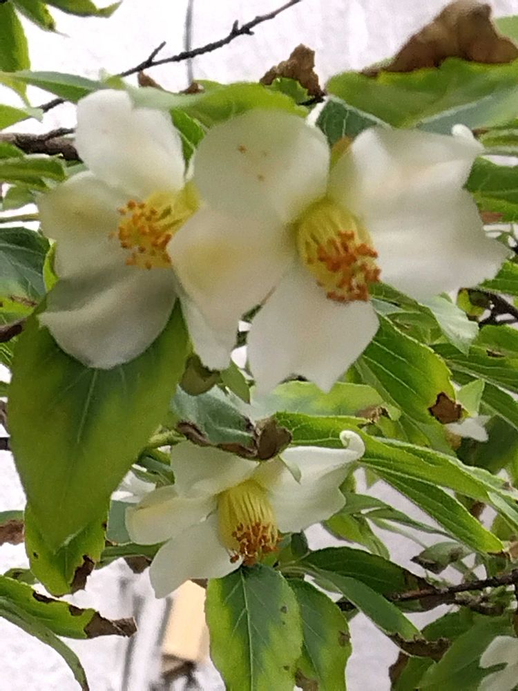 駅に向かう道に咲くヒメシャラは優しい光に透けて