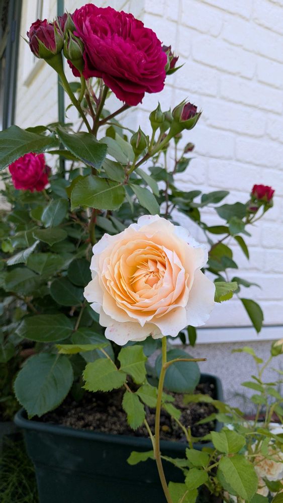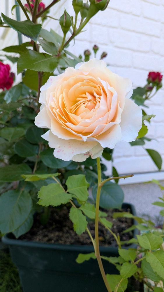 今年の冬、コメリで予約して購入したアプリコットクーラー♪なんとも言えない花色で葉っぱも明るいグリーンで、買って良かったバラです😊コメリでしか買えないバラだそうです😆