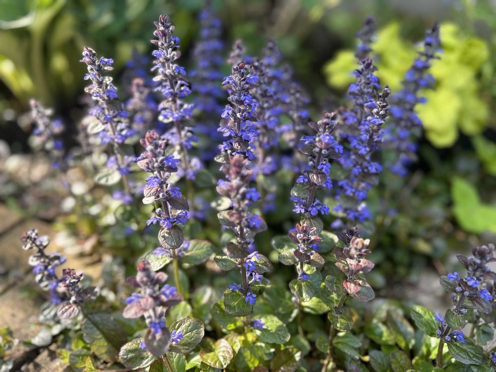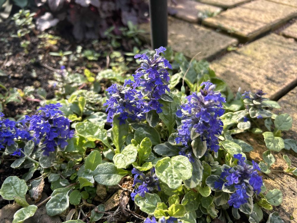 忙しい一日でしたが、久しぶりのお天気の朝でした☀️アジュガの花が咲いています🌸バーガンディさんは3年目で、あんまり増えません。ゴールドライムは4年目くらいで、増えてちょこちょこ移植しています。チョコレートチップは10年以上いて、増え過ぎて制限してます。バーガンディは斑入りで青いお花が綺麗なので、もっと増えてほしい💕